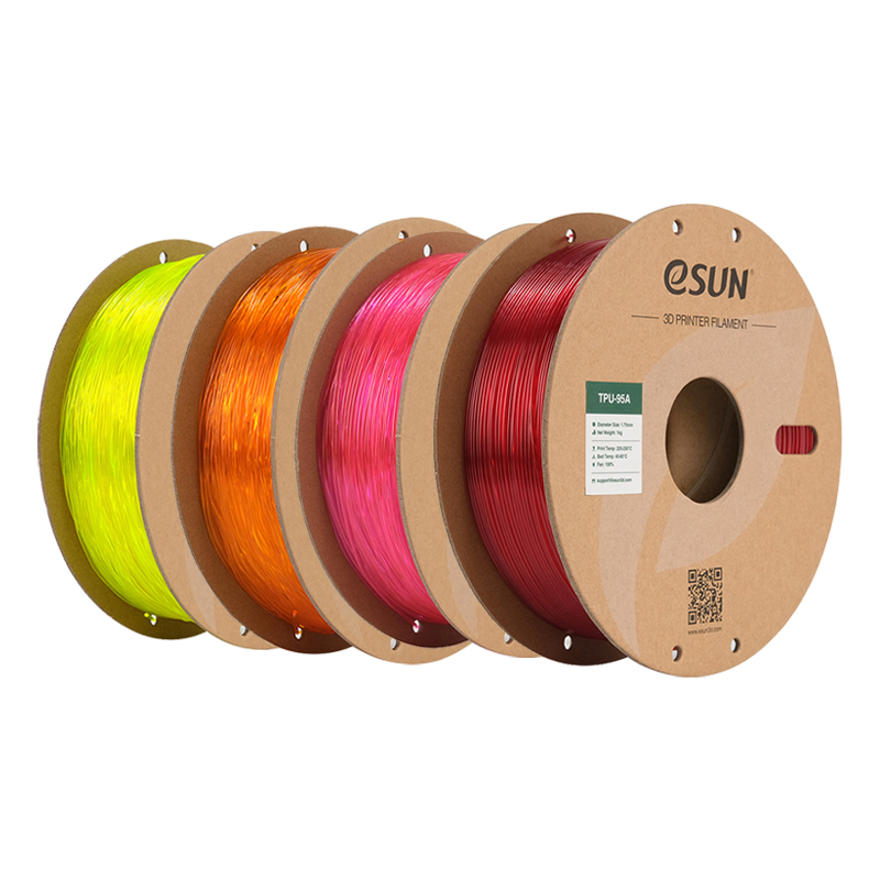 TPU material has good flexibility with a hardness of 95A, easy to print, and can quickly print large, complex and accurate prototypes of elastomer parts.Excellent elasticity, printed products with tpu filament are not easy to deform.